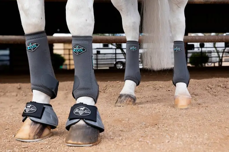 The Professional’s Choice 2XCool Sports Medicine Boot was designed around COOLING, COMFORT, and DURABILITY. This neoprene-free boot is constructed with ultra-lightweight, super-breathable materials that provide the support and 4-way stretch Professional’s Choice boots are known for. The liner of the boot is made with 2XCool performance fabric by brrr°, a technologically-advanced textile that combines natural cooling minerals, active wicking, and rapid drying to create a “Triple Chill Effect” that instantly and continuously draws away heat and moisture. A new stretch Kevlar patch on the suspensory strap flexes with every step to provide ultimate support and durability without restricting freedom of movement. The Professional’s Choice 2XCool Sports Medicine Boots featuring brrr° will keep your horse’s legs cool, dry, and protected.