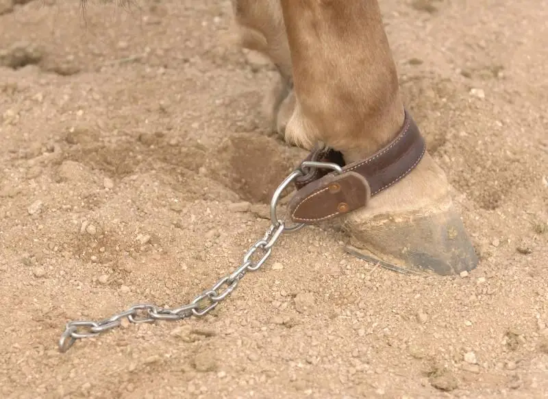 Horse controlled training aid allows immediate, self-punishment. Easy fasten leg strap made from durable harness leather with a latigo lining. Sized to fit average to small horses.