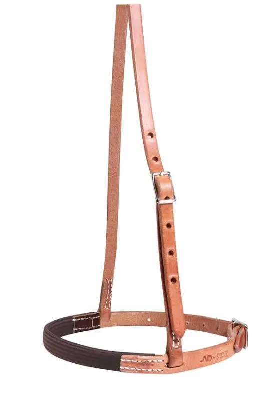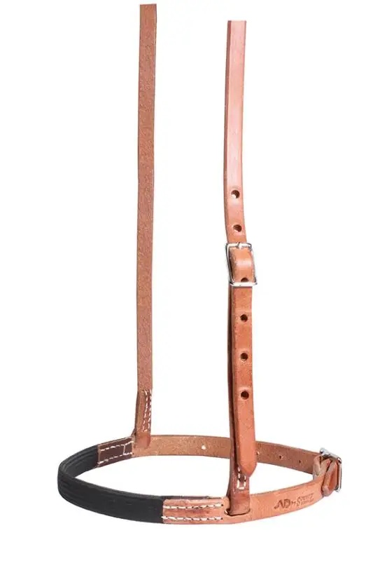 Premium harness leather caveson with polyester coated rubber nose for optimum, durable stretch. 1/2″ wide headstrap with nickel buckle.