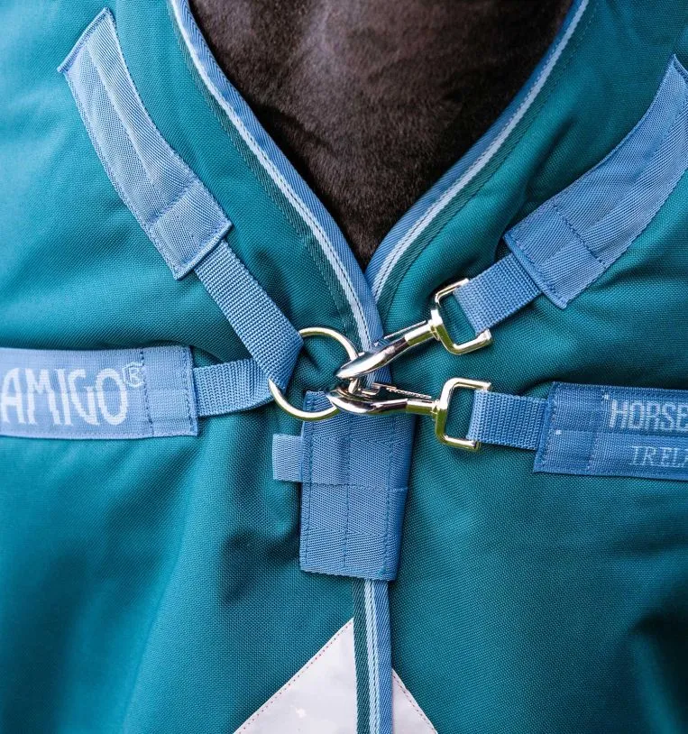 The Amigo® Bravo 12 Wug embraces comfort with V-Front Closure and front and rear leg arches to deliver freedom of movement for your horse to graze and roam at liberty without restriction. The strong 1200D polyester waterproof and breathable outer gives protection against the elements, and the lightweight Thermobonded fibrefill provides superior warmth with exceptional heat retention, helping to keep your horse warmer for longer in cold weather. Three surcingles allow for a secure, snug, adjustable fit, and reflective strips and shine-enhancing lining finish this rug’s exceptional credentials.