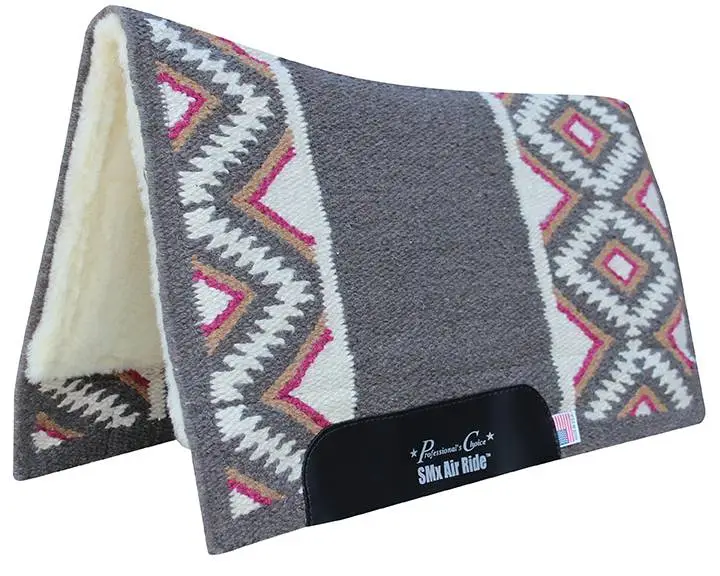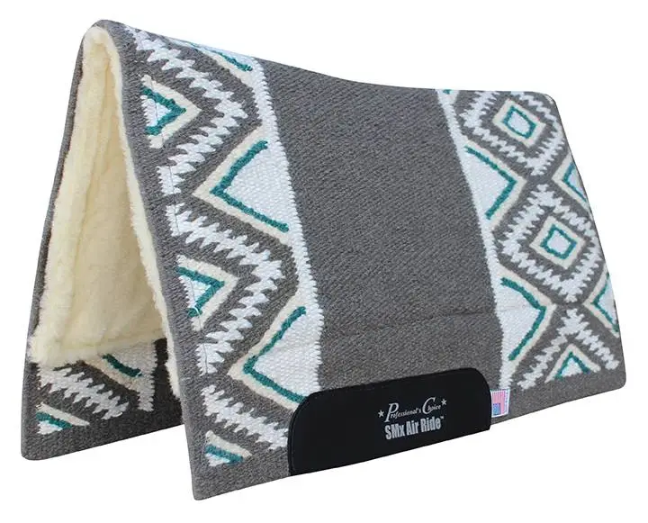 Developed from the horses back up, the Comfort-Fit SMx Air Ride Saddle Pad is contoured to follow the curve of the horses spine. As a result, the pad locks in place on the horses back, allowing full movement. The 3/4 ” SMx Air Ride core is made of a unique material found in the protective gear of professional human athletes for absorbing shock while allowing air flow to the skin, the SMx Air Ride cores natural cooling system lowers the horses body temperature and slows the rate of fatigue. A natural felt bottom absorbs sweat and provides additional grip on the horse. 60-Day money-back guarantee/one-year warranty or as required by law. Click here to learn more about the SMx Air Ride.