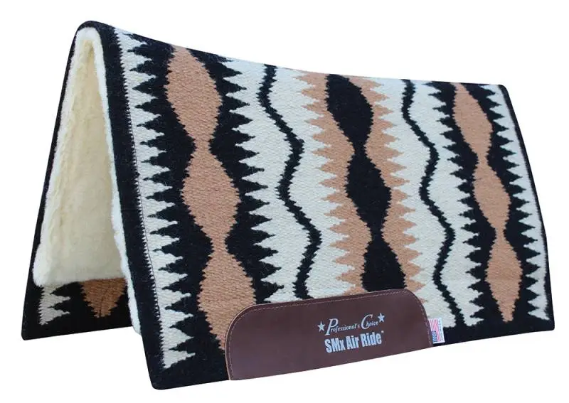 Developed from the horse’s backup, the Comfort-Fit SMx Air Ride Saddle Pad is contoured to follow the curve of the horse’s spine. As a result, the pad locks in place on the horse’s back, allowing full movement. The SMx Air Ride core absorbs shock and improves saddle fit for ultimate equine comfort. The Air Ride core is made of a unique material found in the protective gear of professional human athletes for absorbing shock while allowing air flow to the skin, creating a natural cooling system that lowers the horse’s body temperature and slows the rate of fatigue. Fleece lining. Comes complete with a 60-day money-back guarantee – if you don’t love it, we will buy it back!