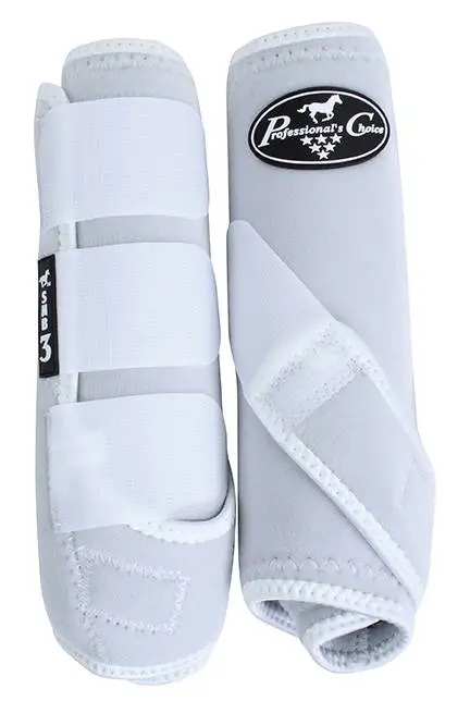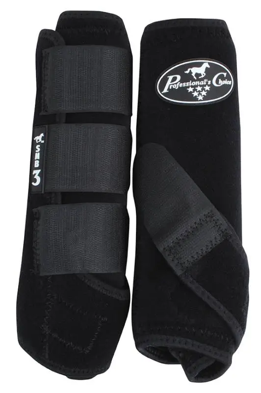 The SMB-3 is a hybrid between the two best selling protective boots: the original SMB II and the VenTECH SMB Elite. The exterior is constructed with Professional’s Choice signature neoprene. Together with an UltraShock lining, the SMB 3 safeguards the cannon bone, tendons, and soft tissue, while absorbing energy from hoof impact. The slightly longer suspensory strap stretches with each stride allowing full ankle movement and helps to eliminate hyperextension of the fetlock. The SMB 3 is cut back at the lower front to allow for proper fit when used with any Professional’s Choice bell boot. Lyrca binding stretches to create a more snug fit along the top and bottom of the boot, helping to keep dirt out. Once again, the Professional’s Choice motto is achieved, The more comfortable the horse, the better the performance. 30-Day money-back guarantee/six-month warranty or as required by law. Sold in pairs.